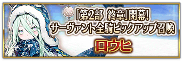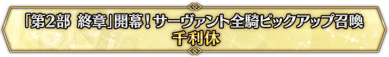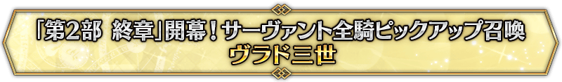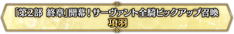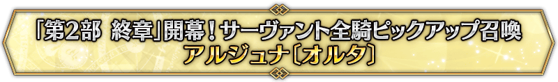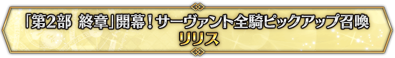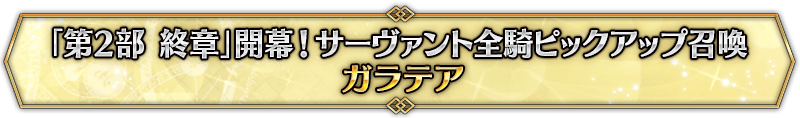 なお、本召喚は『「第2部 終章」開幕! サーヴァント全騎ピックアップ召喚』ピックアップスケジュールに記載された日程で召喚内容が切り替わりますが、開催期間内において複数回おこなわれる同名ピックアップ召喚は召喚回数がリセットされずに引き継がれます。