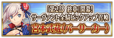 ※上記の「★5(SSR)宮本武蔵(バーサーカー)」のイラストは霊基再臨第2段階のものです。