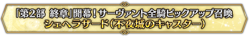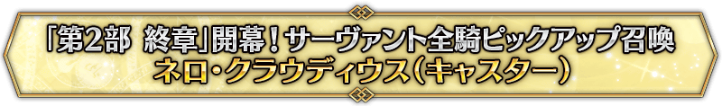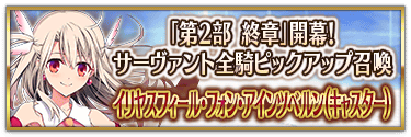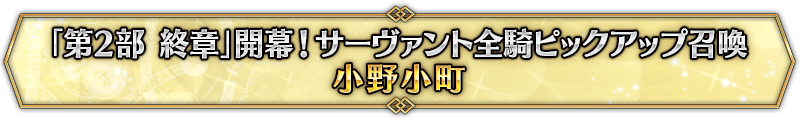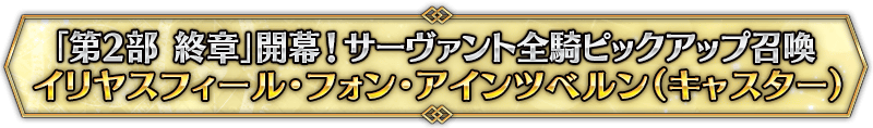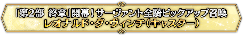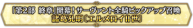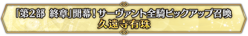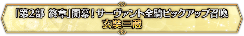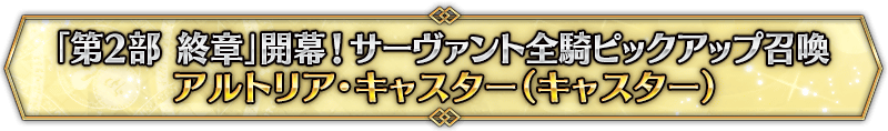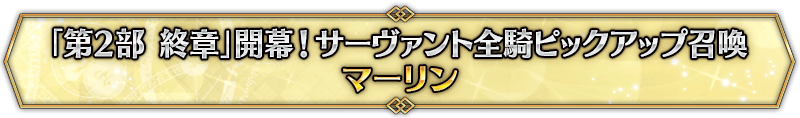 なお、本召喚は『「第2部 終章」開幕! サーヴァント全騎ピックアップ召喚』ピックアップスケジュールに記載された日程で召喚内容が切り替わりますが、開催期間内において複数回おこなわれる同名ピックアップ召喚は召喚回数がリセットされずに引き継がれます。