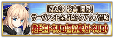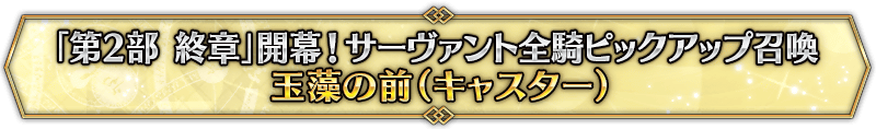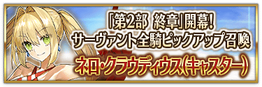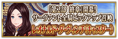 ※『「第2部 終章」開幕! 英霊極点ピックアップ召喚』では、該当サーヴァントはピックアップ対象ではございません。