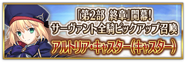 『「第2部 終章」開幕! サーヴァント全騎ピックアップ召喚』では、すべてのクラスのサーヴァントのピックアップ召喚を実施!