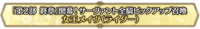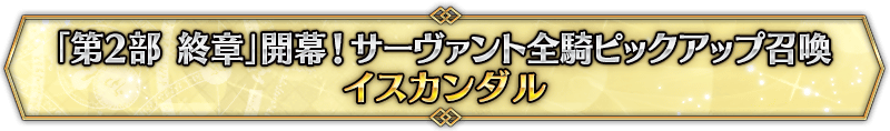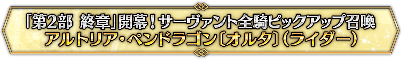 ※『「第2部 終章」開幕! 英霊極点ピックアップ召喚』では、該当サーヴァントはピックアップ対象ではございません。