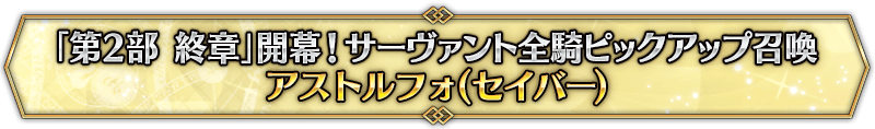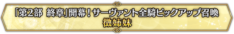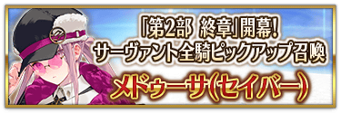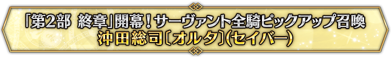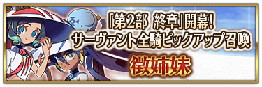 ※『「第2部 終章」開幕! 英霊極点ピックアップ召喚』では、該当サーヴァントはピックアップ対象ではございません。