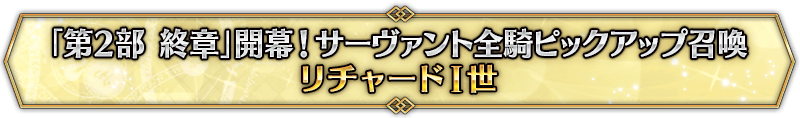 本召喚は『「第2部 終章」開幕! サーヴァント全騎ピックアップ召喚』ピックアップスケジュールに記載された日程で召喚内容が切り替わりますが、開催期間内において複数回おこなわれる同名ピックアップ召喚は召喚回数がリセットされずに引き継がれます。