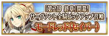 ※上記の「★5(SSR)モードレッド(セイバー)」のイラストは霊基再臨第2段階のものです。