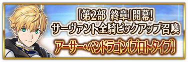 ※上記の「★5(SSR)アーサー・ペンドラゴン〔プロトタイプ〕」のイラストは霊基再臨第2段階のものです。