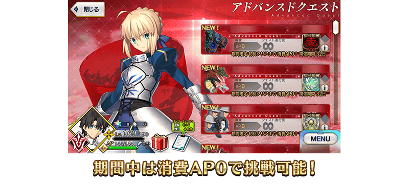 ※一部の特殊なクエストについては消費AP0の対象とならず、通常の消費APとなりますのでご注意ください。
