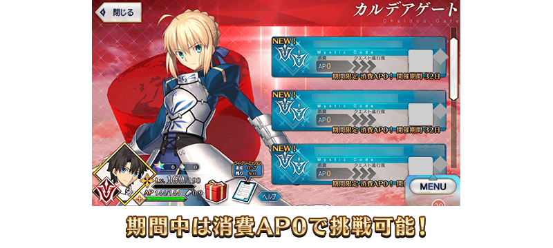 【期間限定】「奏章Ⅳ」をクリアしていると、「監獄塔に復讐鬼は哭く」「オール・ザ・ステイツメン! 」&「体験クエスト」「概念礼装獲得クエスト」「魔術礼装獲得クエスト」などの特殊なクエストの消費AP0!