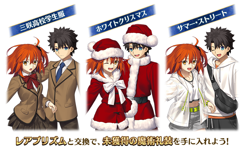 さらに今回追加された魔術礼装「三咲高校学生服」「ホワイトクリスマス」「サマー・ストリート」は、特定の条件を達成すると無料で交換することができます!