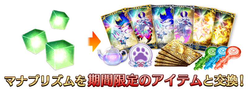 毎月更新される「マナプリズムを交換」のアイテムとは別に期間限定での追加となりますので、期間中の交換をお忘れなく!
