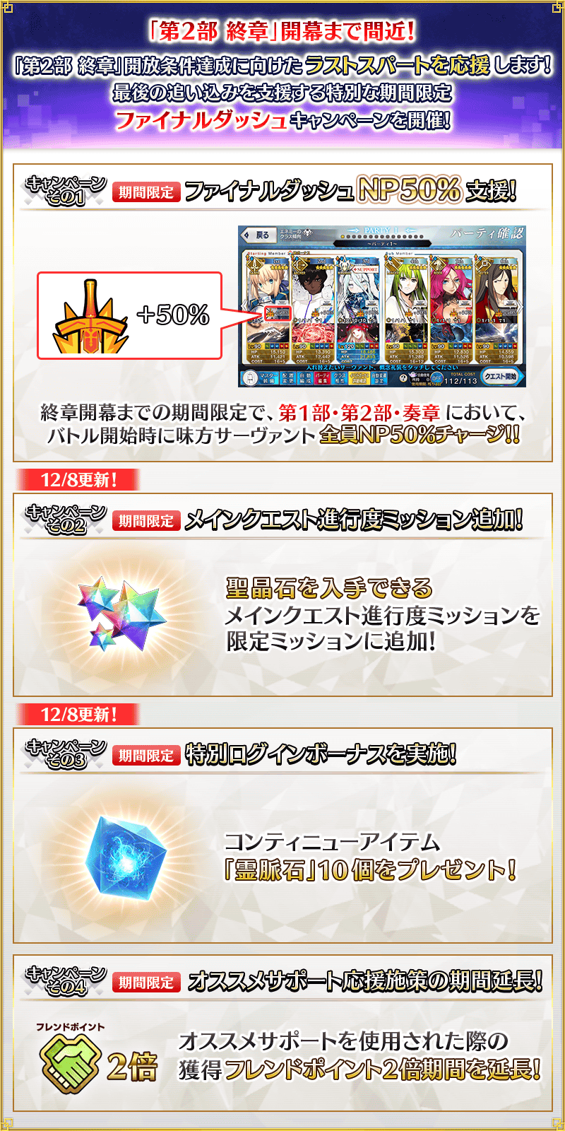 限定 「第2部 終章」開幕までの特別企画!奏章Ⅳまでのメインクエストでバトル開始時にNP50%チャージ!