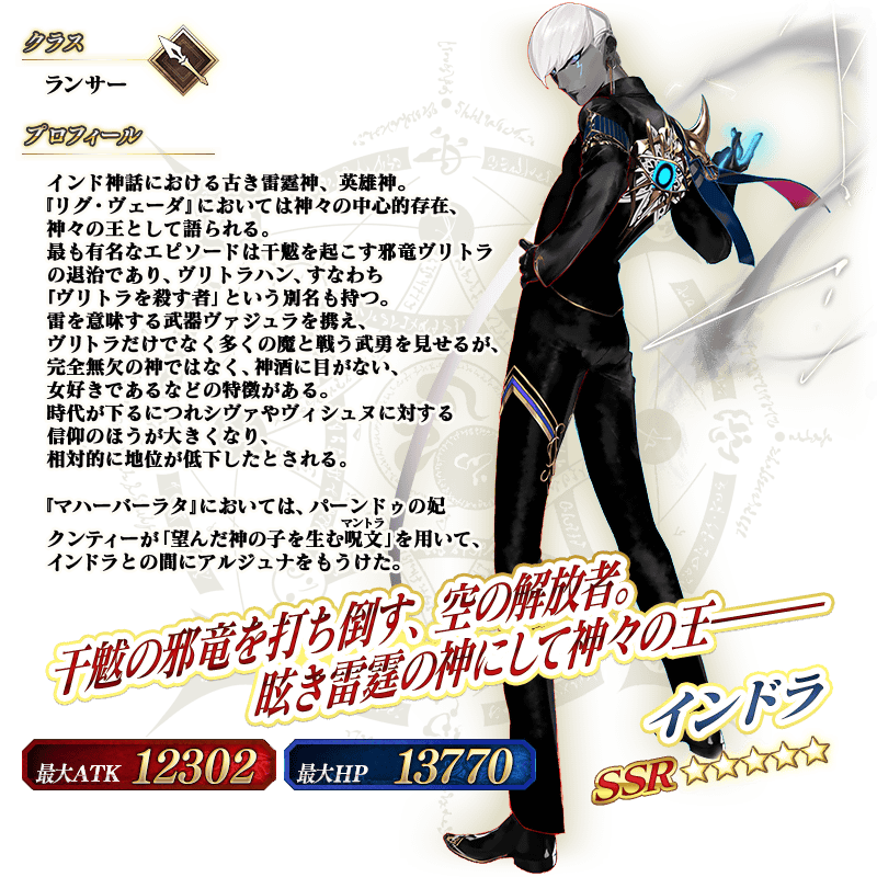 ※上記の「★5(SSR)インドラ」のイラストは霊基再臨第2段階のものです。