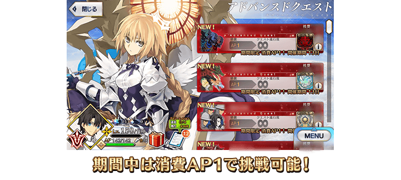 【期間限定】すべてのアドバンスドクエストの消費AP1!