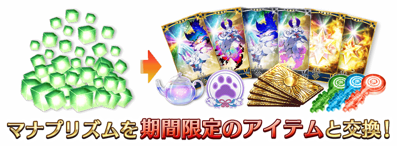 毎月更新される「マナプリズムを交換」のアイテムとは別に期間限定での追加となりますので、期間中の交換をお忘れなく!