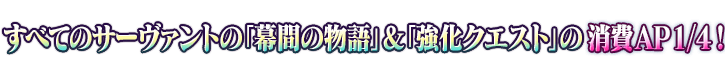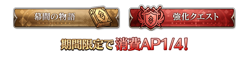 下記の期間中、すべてのサーヴァントの「幕間の物語」と「強化クエスト」の消費APが1/4になります!