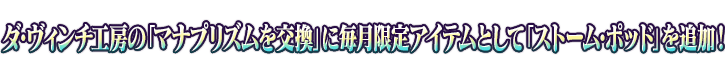 【恒常】ダ・ヴィンチ工房の「マナプリズムを交換」に毎月限定アイテムとして「ストーム・ポッド」を追加!