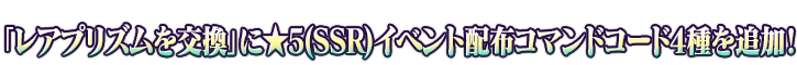 【恒常】「レアプリズムを交換」に★5(SSR)イベント配布コマンドコード4種を追加!