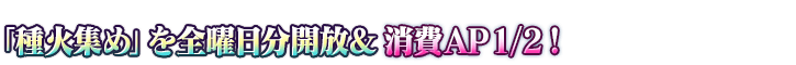 【期間限定】「種火集め」を全曜日分開放&消費AP1/2!