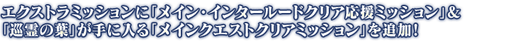 「マスターミッション」の「エクストラ」タブ内に、「メイン・インタールードクリア応援ミッション」と「巡霊の葉」が手に入る「メインクエストクリアミッション」の2種類を追加いたします!