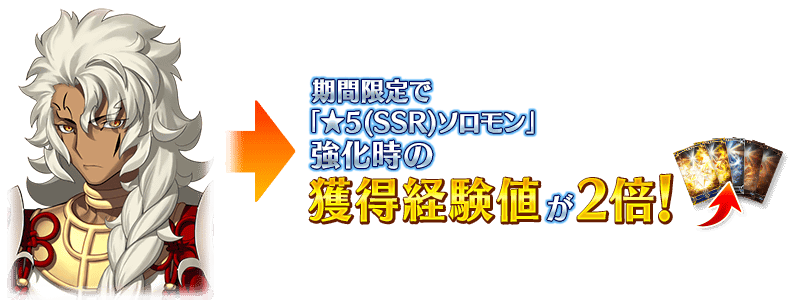 下記の期間中、「★5(SSR)ソロモン」を強化した際の獲得経験値が2倍になります。