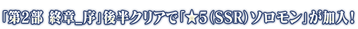 さらに、「第2部 終章_序」後半をクリアすることで「★5(SSR)ソロモン」が加入します。