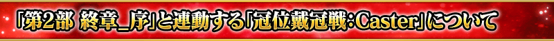 「第2部 終章_序」は前半と後半に分かれており、前半をクリアすることで「冠位戴冠戦:Caster」に参加できるようになります。