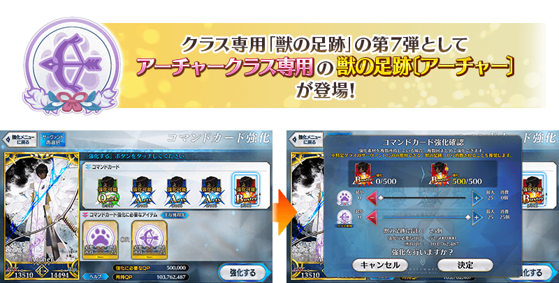 コマンドカードの強化に使用する「獣の足跡」にクラス専用のアイテムを追加いたします。