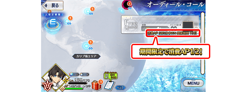 限定 すべての白紙化地球上のフリークエストの消費AP1/2を延長!