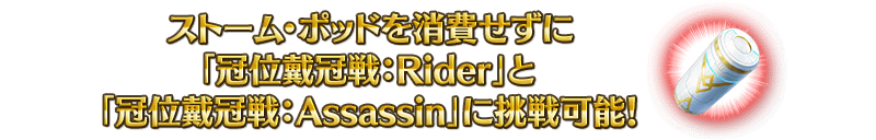 限定 「冠位戴冠戦:Rider」&「冠位戴冠戦:Assassin」のストーム・ポッド消費が0に!