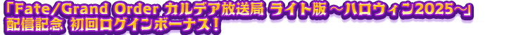 「Fate/Grand Order カルデア放送局 ライト版 ~ハロウィン2025~」におきまして、7万リポストを達成いたしましたので、配信記念ログインボーナスを実施いたします!