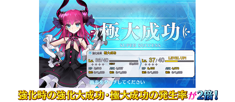 限定 イベントボーナス対象サーヴァントの強化時の大成功・極大成功率が2倍!