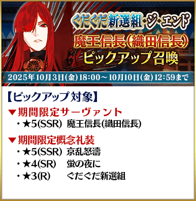 ◆「ぐだぐだ新選組・ジ・エンドピックアップ4召喚」期間◆