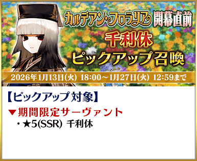 ◆『「カルデアン・フロラリア」開幕直前ピックアップ召喚』期間◆