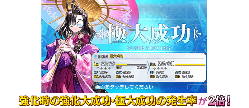 限定 イベントボーナス対象サーヴァントの強化時の大成功・極大成功率が2倍!