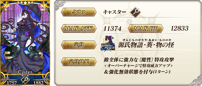 ◆最大解放時効果◆ 自身に必中状態を付与&毎ターンNP5%獲得状態を付与&魅了耐性が10%ダウン【デメリット】 |