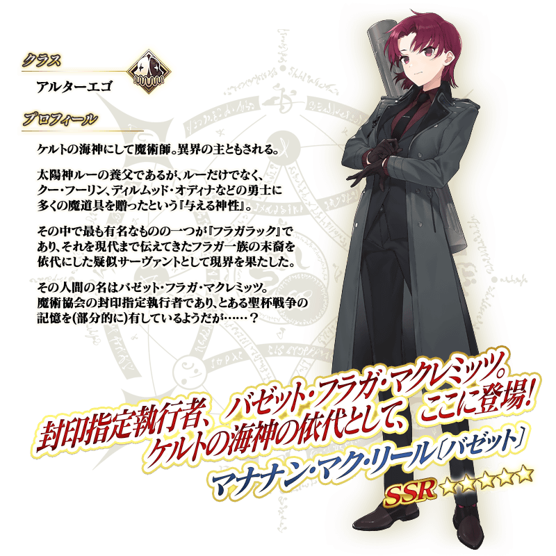 ※「★5(SSR)マナナン・マク・リール〔バゼット〕」の宝具名は再臨段階によって変化いたします。