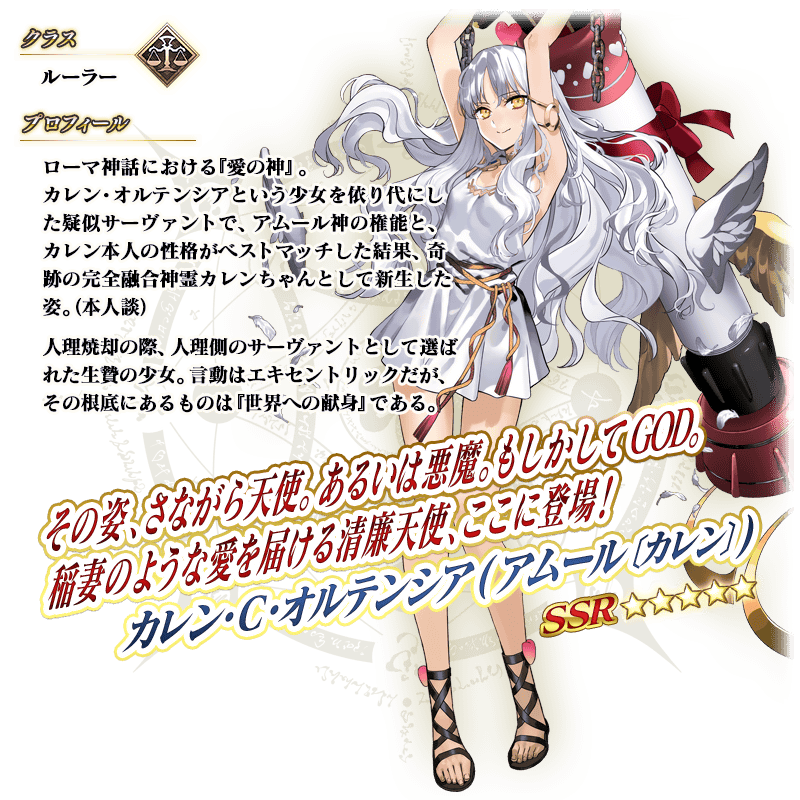 ※「★5(SSR)アムール〔カレン〕」は霊基再臨をおこなうことで、セイントグラフの名称が「★5(SSR)カレン・C・オルテンシア」に変化します。