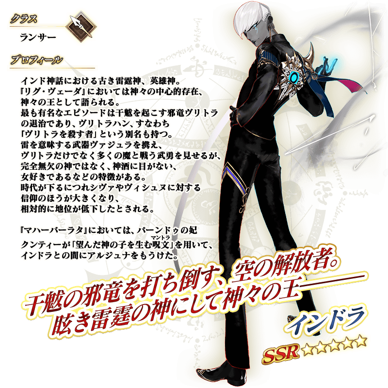 ※上記の「★5(SSR)インドラ」のイラストとセイントグラフは霊基再臨第2段階のものです。