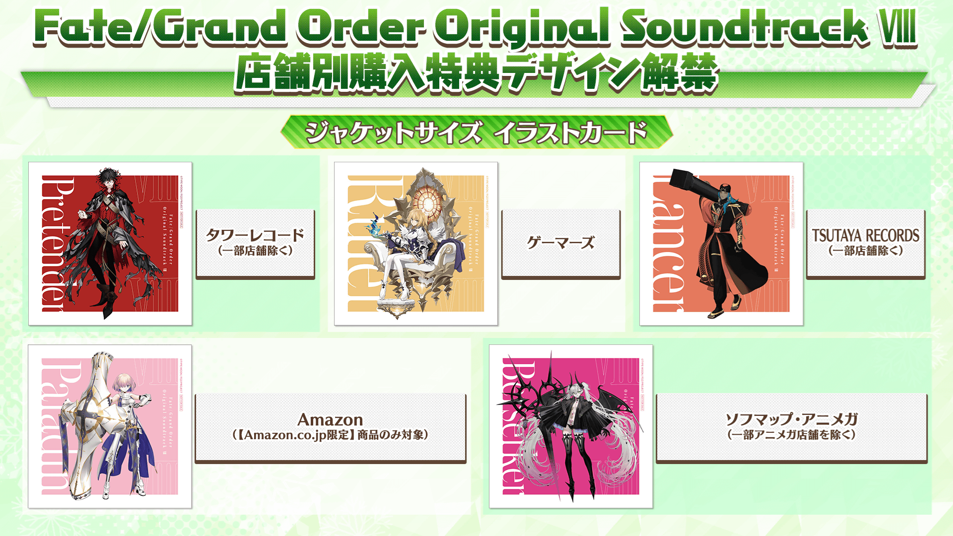 ◆「Fate/Grand Order Original Soundtrack Ⅷ」店舗別購入特典デザインを解禁!◆