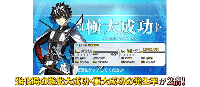 限定 イベントボーナス対象サーヴァントの強化時の大成功・極大成功率が2倍!