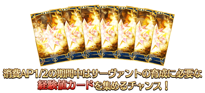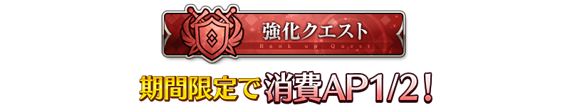 下記の期間中、期間限定でイベントボーナス対象サーヴァントの「強化クエスト」の消費APが1/2になります!(バトルにおいて撤退した場合でも、同様の消費量になります)