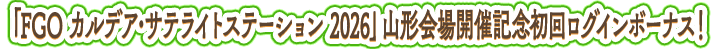 下記の期間中、「FGO カルデア・サテライトステーション 2026」山形会場開催を記念して、「FGO カルデア・サテライトステーション 2026」山形会場開催直前ログインボーナスを実施いたします!