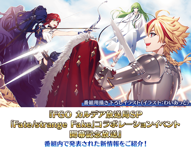 2026年4月25日(土)に配信した『Fate/Grand Order カルデア放送局SP「Fate/strange Fake」コラボレーションイベント開幕記念放送』にて、スマートフォン向けFateRPG「Fate/Grand Order」をはじめとするFGO PROJECTに関する新情報を発表いたしました。