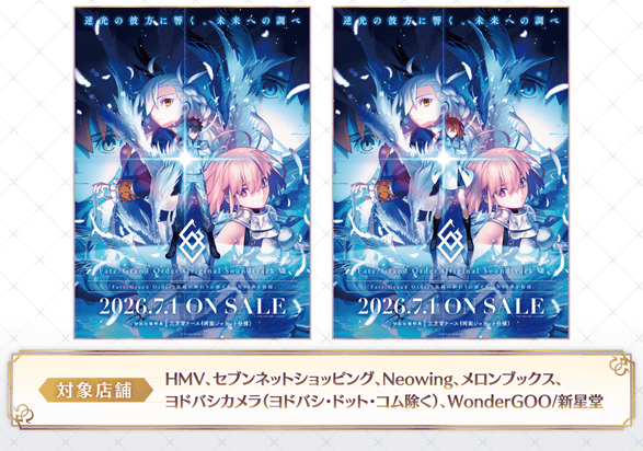 対象店舗:HMV、セブンネットショッピング、Neowing、メロンブックス、ヨドバシカメラ(ヨドバシ・ドット・コム除く)、WonderGOO/新星堂