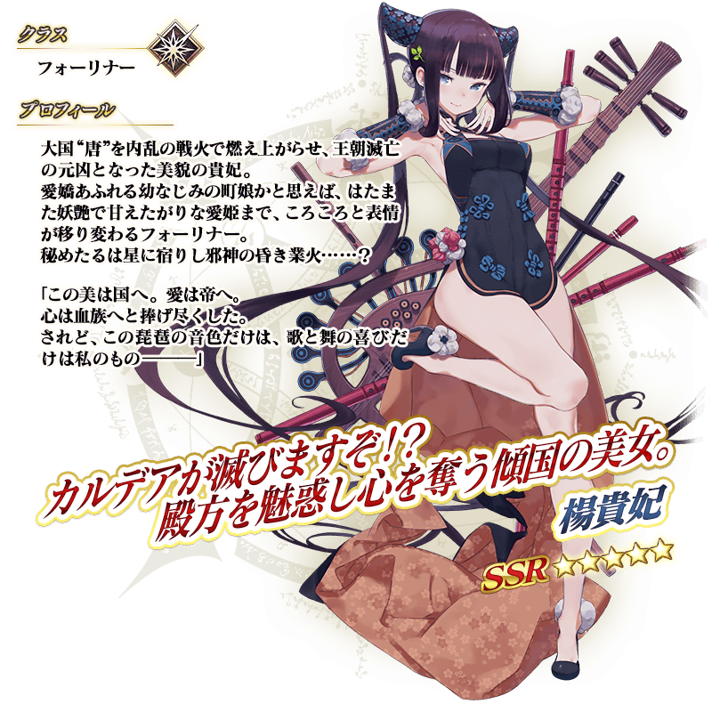 ※上記の「★5(SSR)楊貴妃」のイラストとセイントグラフは霊基再臨第2段階のものです。