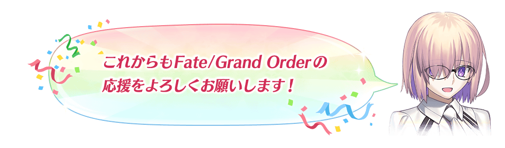 ※キャンペーン開始までに「第1部序章(特異点F 炎上汚染都市 冬木)」をクリアしていない場合、クリアすることで受け取ることができます。 ※上記時間までに、ターミナル画面にあるクエストボードに「CLEAR」の文字が表示されている必要があります。 ※期間内にログインできなかった場合には受け取ることができません。 ※プレゼントは、1回のみの受け取りになります。
