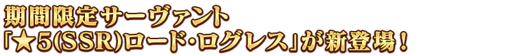 下記の期間中は「★5(SSR)ロード・ログレス」の力を借りて、対象クエストに挑んでみましょう!