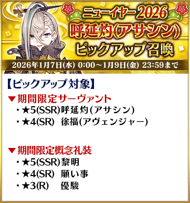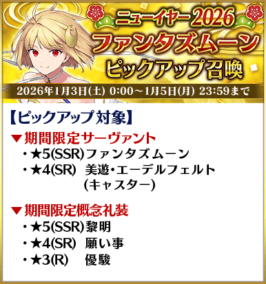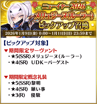 ◆「ニューイヤー2026ピックアップ召喚」期間◆