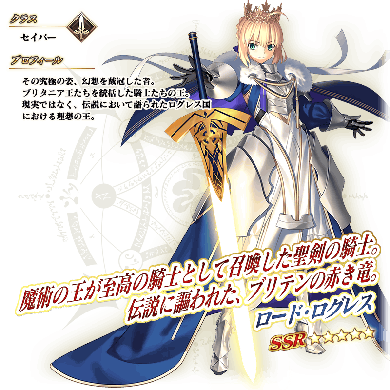 ※上記の「★5(SSR)ロード・ログレス」のイラストとセイントグラフは霊基再臨第3段階のものです。 ※「★5(SSR)ロード・ログレス」は霊基再臨第3段階解放後、サーヴァント詳細画面でセイントグラフを拡大表示した際に、霊基再臨第3段階のイラスト全体が表示されたバージョンを鑑賞できます。